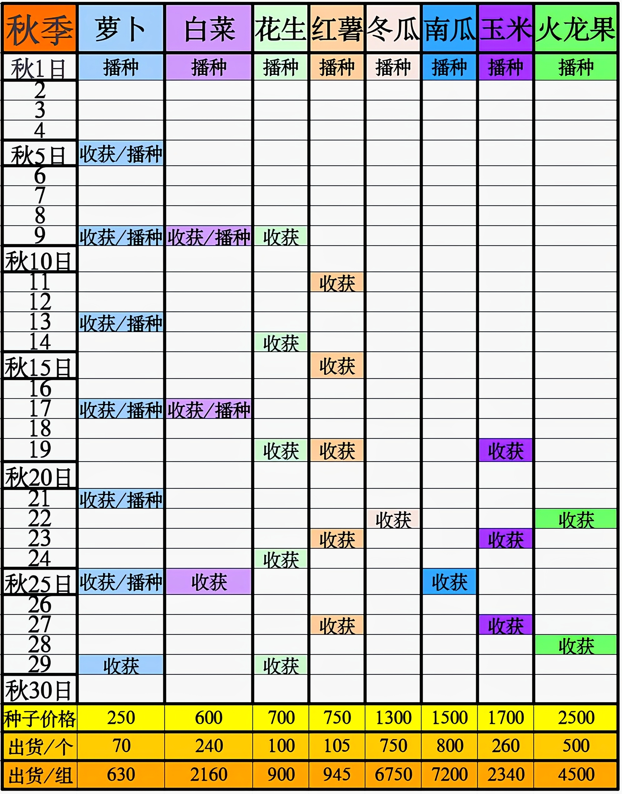 以上就是牧场气息秋季作物周期表,秋季作物生长周期及出货价格,更多相关攻略,请关注3dm手游网更新!
