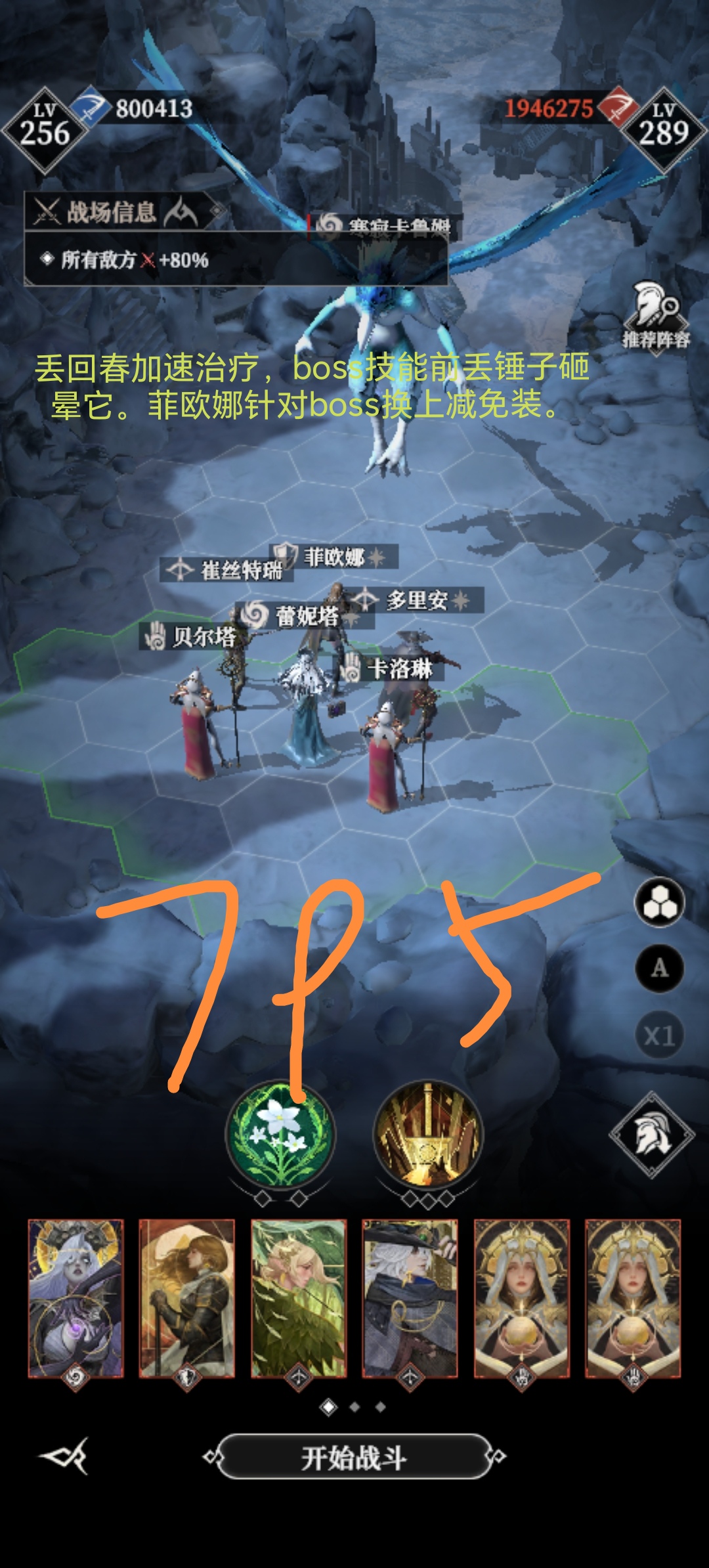 丢回春加速治疗,boss技能前丢锤子砸晕它。菲欧娜针对boss换上减免装。