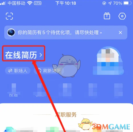 1、首先打开手机智联招聘app,然后点击在线简历