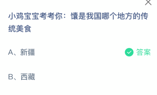 以上就是小鸡宝宝考考你:馕是我国哪个地方的传统美食,支付宝蚂蚁庄园2025年10月7日答案最新,更多精彩内容,请点击关注3DM手游网更新!