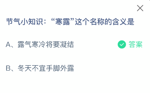 以上就是节气小知识:“寒露”这个名称的含义是,支付宝蚂蚁庄园2025年10月8日答案最新,更多精彩内容,请点击关注3DM手游网更新!