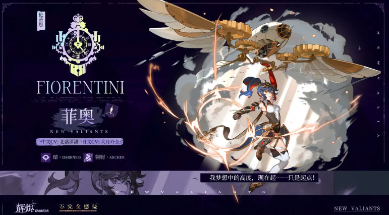 那么这里的最后一个角色,大家放菲奥,是因为她可以跟伊莱莎一起触发冰元素的效果,菲奥这个角色目前的话,在输出上面其实更像一个远程的输出角色,她在使用的武器上面是锈剑,而且后期可以利用长弓带来远程输出,技能上面连续攻击的时候最后还会产生一个终结剑的效果,此时带来的强力输出还有削刃的效果是针对一些boss角色带来的能力,而且她使用终结剑如果击中敌人的话,会带来一层底火的加成,底火就是她比较特殊的一个机制,通过底火的话,还可以增强她远程剑术的输出,并且在这个角色觉醒之后,可以为团队带来最大的增益能力。