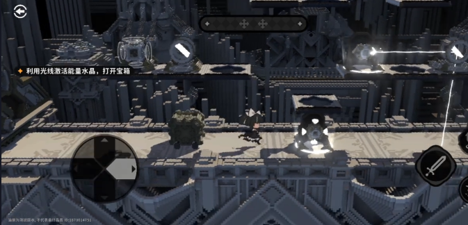在进入到第1个关卡时,难度真的很简单。玩家可以开启寻宝人的挑战,先直接跳到第1个交互点,接着又跳到第2个交互点完成光线的调整之后就可以拿到奖励。那第2个关卡就是直接跳到平台上,接着跳到第2个平台,只需要点一下交互,就可以让镜面翻上去。这个时候的平台就可以慢慢的降到底,等到落地之后往左边跳,可以精准的落到中央交互点的位置。