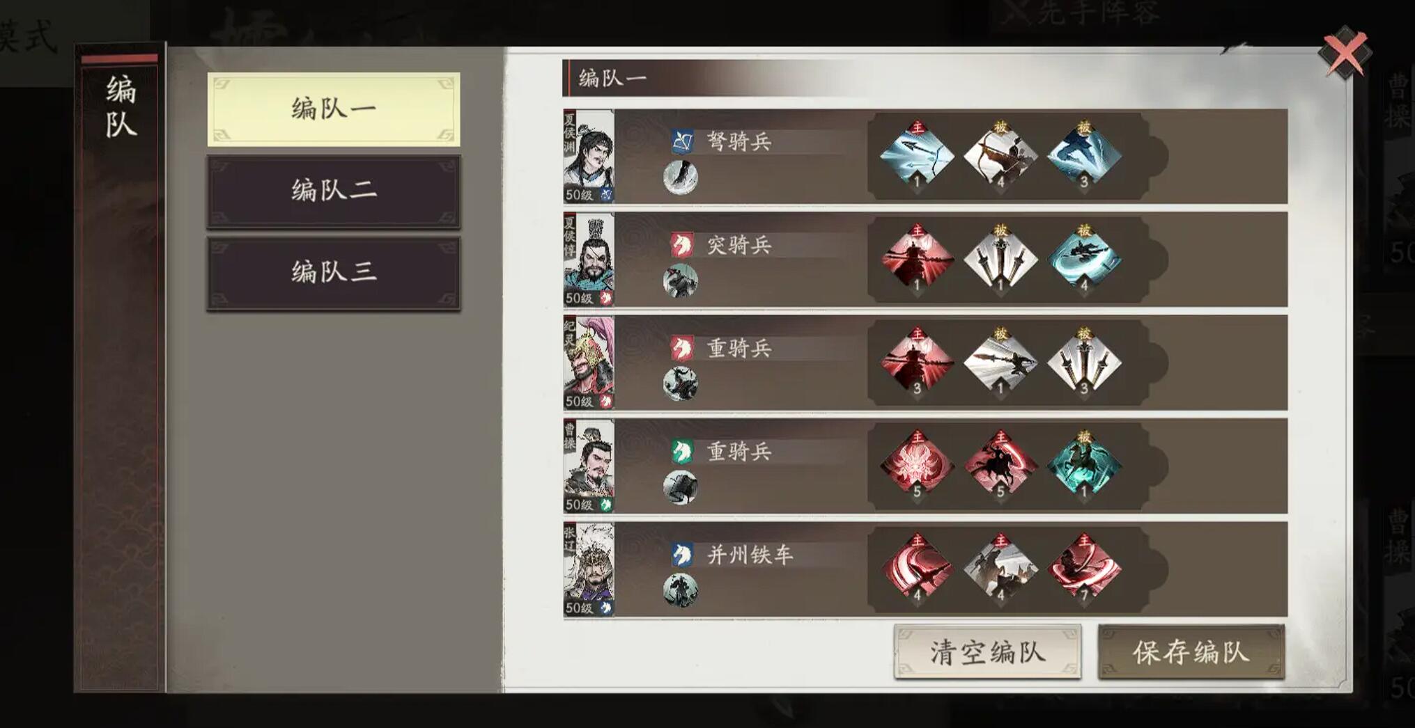 对付关羽、张飞这种主C,可以优先用嘲讽让他们只能砍你,要是遇到夏侯惇这种靠普攻吃饭的,缴械直接让他哑火两回合。另外他那个重兵威慑被动,高阶解锁后开场2回合让敌方全体武技伤害+20%,配合骑兵队的AOE输出,伤害直接拉满。