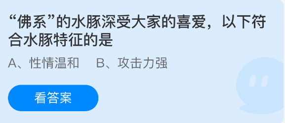 “佛系”的水豚深受大家的喜爱,以下符合水豚特征的是?支付宝小鸡课堂开课啦!每天花一分钟答题赚饲料,喂喂小鸡就能贡献爱心啦!轻松又意义十足!2025年10月11日蚂蚁庄园的小鸡课堂题目正确答案是【性情温和】,水豚以其极为温和的脾气著称,几乎不主动与任何动物发生冲突,即便是遭受其他动物的侵扰,它们也会以一种“佛系”的态度应对,不会轻易发怒或反击。