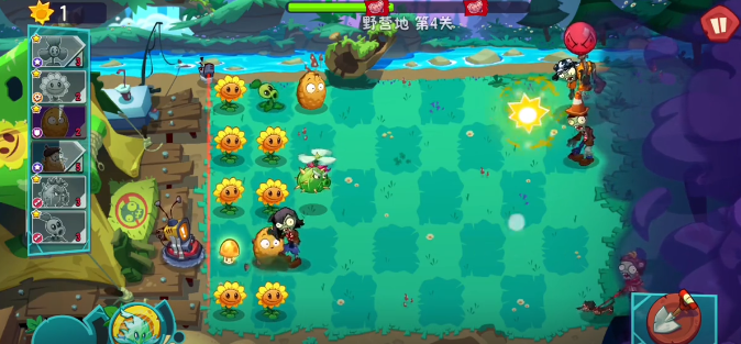 接着来说一下,那变身茄子,至今为止也没有知道到底是什么样的作用。说是可以变成其他的植物,但是每一次都是随机变的。有的时候会变成一个大喷菇,说实话还是比较好用的,但有的时候又变成一个小太阳花,在关键的时候一点作用都没有。在随机变错了植物之后,也没有来得及去补充上面的那一排就会直接被僵尸偷家,这真的还是让人很生气的。不过在打完后半段之后还是比较刺激,正想要补种植物,结果又发现来了一大波,屏幕上还会有提示,所以变身茄子怎么玩还是很关键的,只是目前为止,还并不知道应该怎么玩。