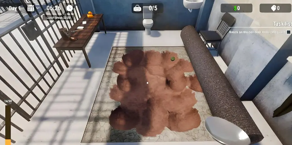 越狱模拟器以监狱逃脱为核心,玩家需在14天内策划越狱,游戏采用3D场景和昼夜系统,白天执行日常任务降低警戒值,夜晚秘密行动。主要流程包括: