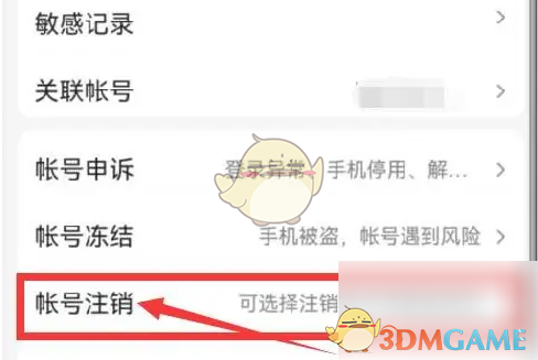 3、点击“帐号注销”进入,如图所示。