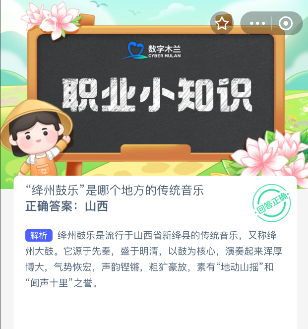 以上就是绛州鼓乐是哪个地方的传统音乐?支付宝蚂蚁新村最新答案2025年10月15日,更多精彩内容,请点击关注3DM手游网更新!