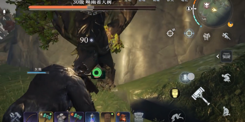 它的普攻技能就是用狩者拿着的树干不断的向敌人挥舞,树干有着高额的攻击力,一旦被碰到的话,那玩家就会受到严重的伤害,大家在攻击boss的时候,可以转着圈的攻击来躲避boss的普攻技能。