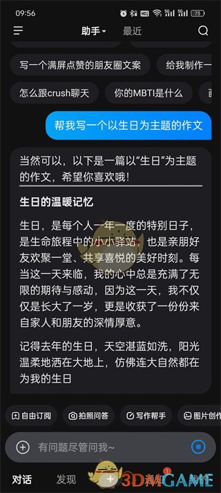 以上就是小编带来的文心一言怎么写作?文心一言ai写作方法,更多相关资讯教程,请关注3DM手游网。