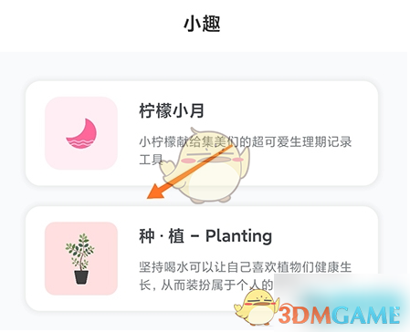 1、首先打开柠檬喝水app,进入软件之后,通过底部菜单栏进入小趣页面,点击其中的种植;