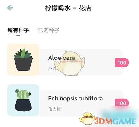 3、进入花店页面,可以看到各种种子,点击种子进入购买页面购买;