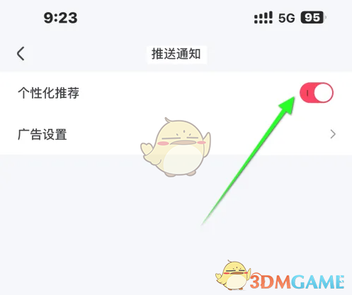3、在推送通知页面,关闭【个性化推荐】即可,如图所示。