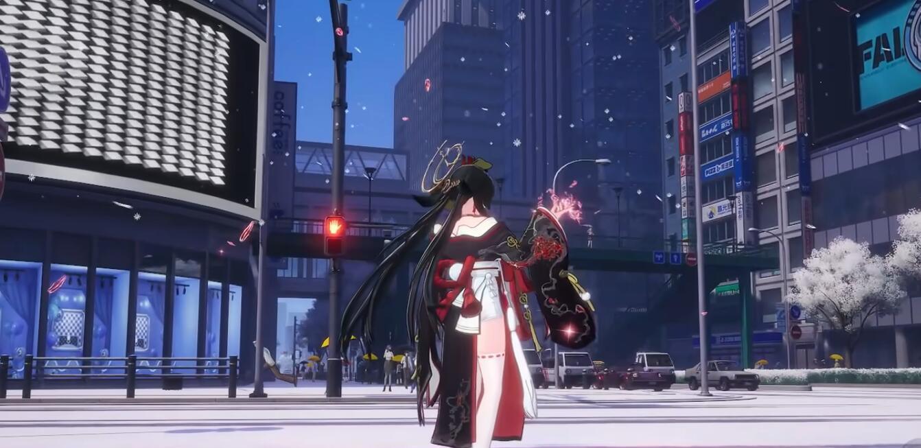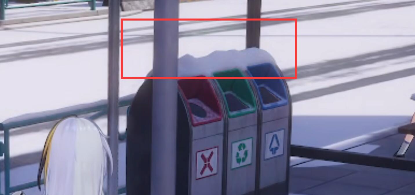 说完天气系统,还要说一下配合天气的时停机制,普通游戏时停就是画面静止,但异环里的雪花不一样,会瞬间变成那种亮晶晶的静态颗粒,而且全都朝着你的方向,有种黑客帝国那种子弹时间的立体电影质感,而且室内外积雪的区分也很有意思。进商店前脚下还是白茫茫一片,推开门的瞬间雪就没了,出来又立刻开始积雪。但是目前还是有小bug,屋檐底下经常薛定谔的雪,明明站在室外,雪花却突然停了,走两步又开始下。不过整体不影响体验。