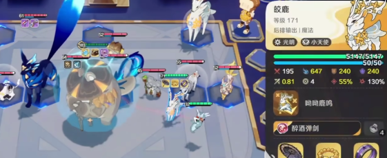 皎鹿在游戏当中的基础属性是光明属性,附带有小天使特质,作为后排输出角色,它的伤害极高,在等级不断增高时,其法术强度,也能够得到质的飞跃,171级的皎鹿就拥有647点的法术强度了,虽然攻击速度不高,但整体性的技能效果,不容小觑。