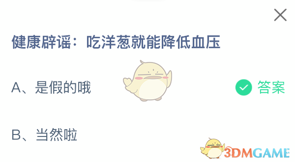 以上就是健康辟谣:吃洋葱就能降低血压,支付宝蚂蚁庄园2025年10月20答案最新,更多精彩内容,请点击关注3DM手游网更新!