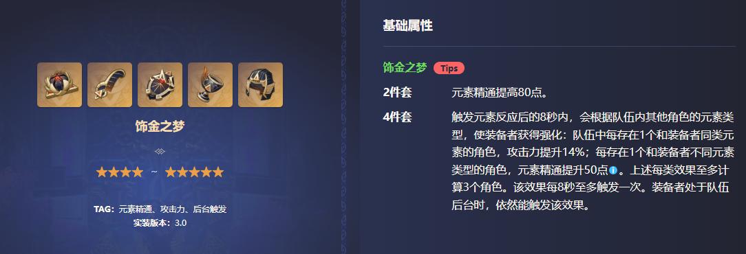 饰金之梦4件套:提升元素精通和攻击力,目前测试中表现优异-过渡套装