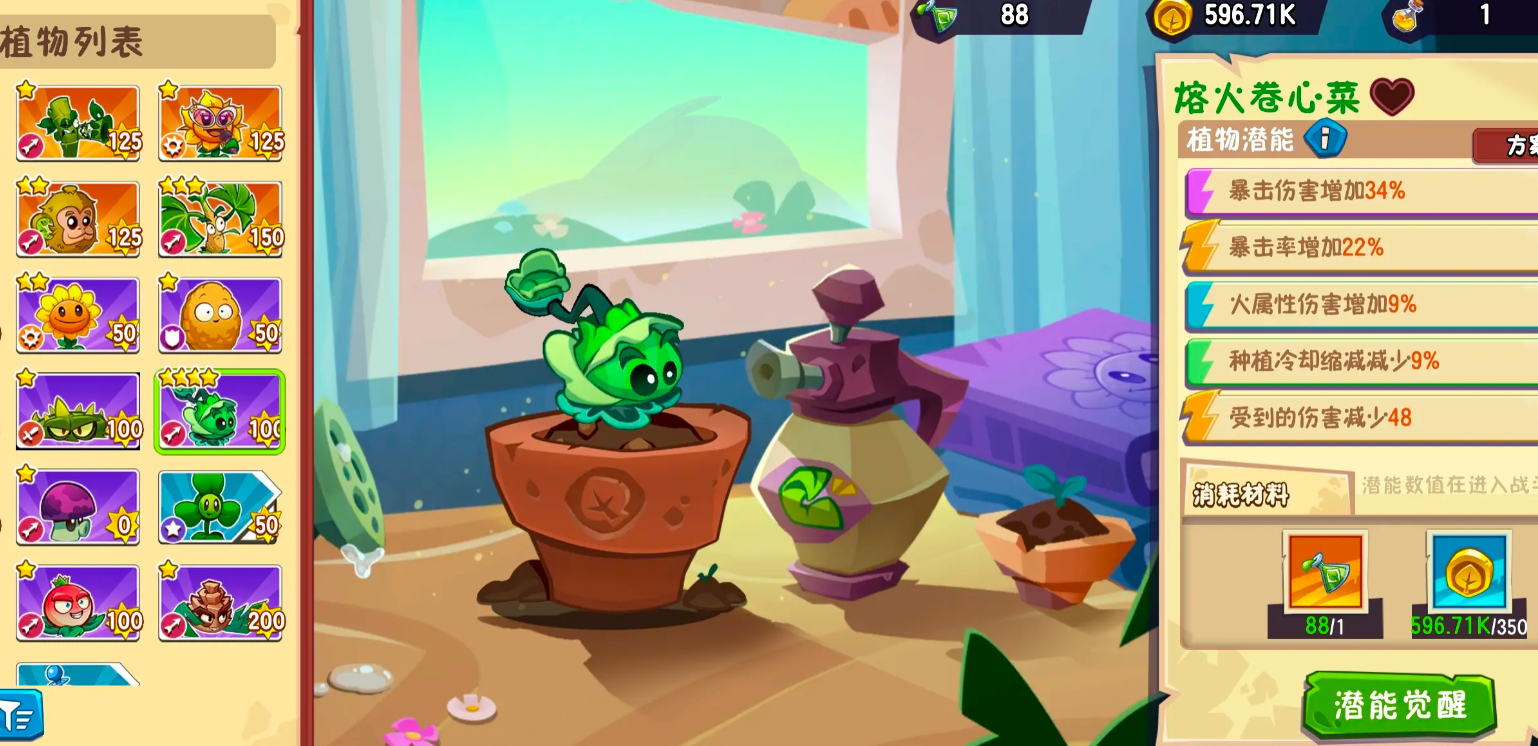当黄金卷心菜和火属性雨露结合时,可以变化成为融火卷心菜,基础攻击附带有火焰效果,可以对多行的僵尸造成aoe伤害,同时在发射期间,有一定概率能够发射多个卷心菜,火属性的阵容当中,熔火卷心菜和熔岩向日葵,熔火荔枝搭配时,可以对敌方目标,造成高强度的dot灼烧伤害。