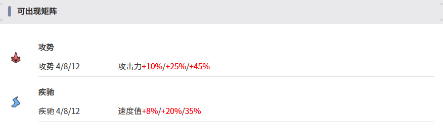 对于需要输出能力而言的金狮子搭配是可以提升整体作战效果的,所以即使是作为目前的输出智壳,大家一定要注意他的能力,如果前期没有搭配起来的话,一定要利用源器来进行补充,因为游戏当中一直是有两个核心的,这里虽然以智壳为核心的情况下,但是同时源器也是可以来补足很多的能力效果,这个目前带的矩阵效果一般来说都是固定的,大家拿到金狮子之后,一般固定带的矩阵就是乘势追击和暴烈利刃,还有疾驰这3个矩阵效果带来的效果都是各3点的提升能力,还有不够的数值大家就只能依靠元气来凑,剩下需要的一些点数,才能把这里需要的17点给用了,像爆裂利刃,这里的核心基本效果如果单靠源器来凑的话,最多是凑三点的。