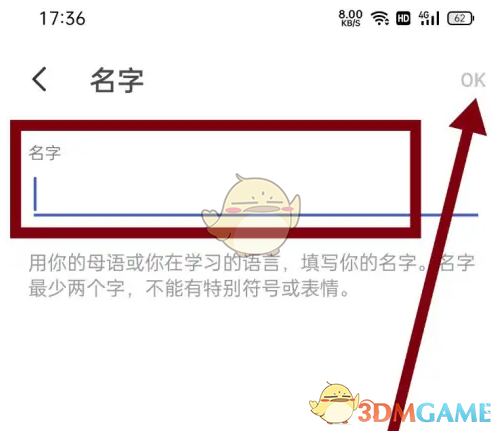 4、修改你的名字最后点击右上角的OK即可。