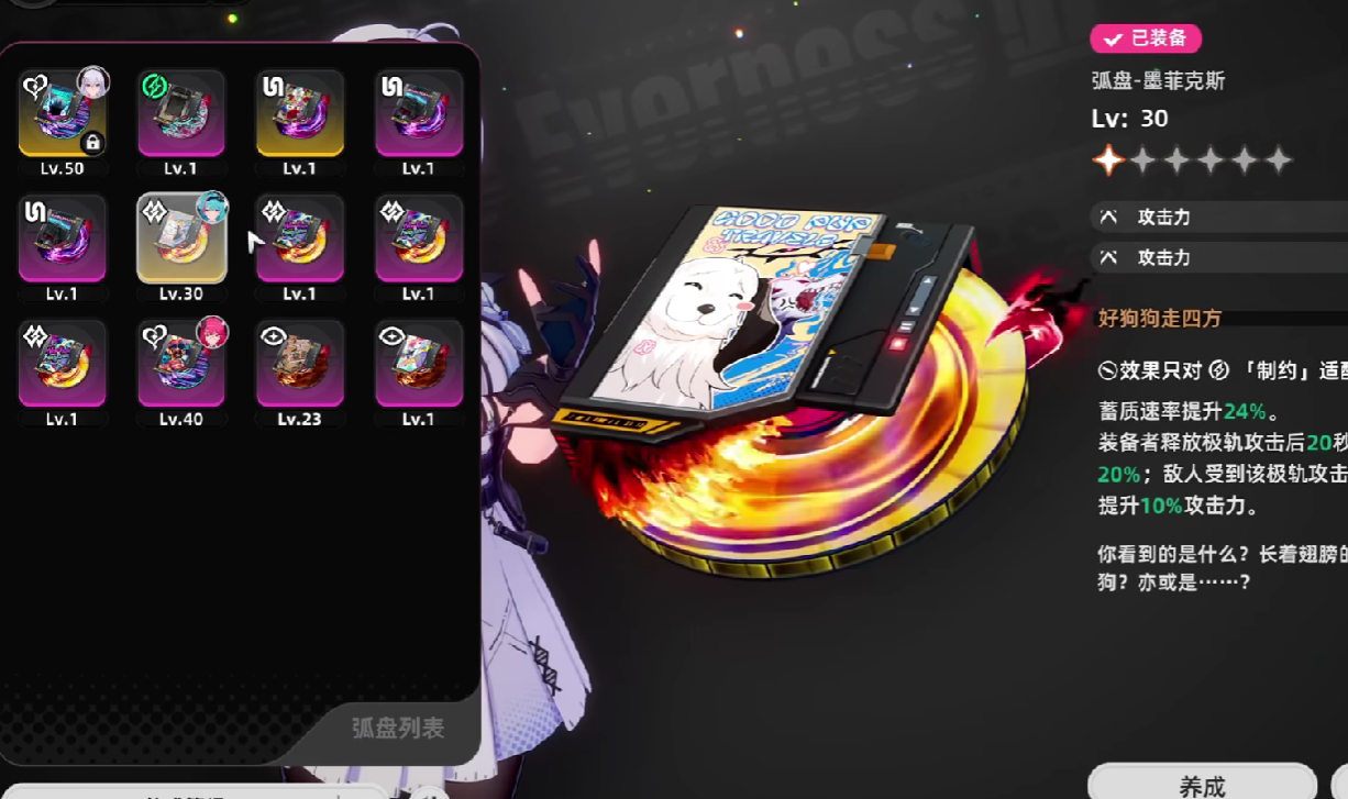 输出型弧盘包含有无首铁驭、日蚀,作为主要C位需要搭配的武器,它们包含有很强的攻击倍率加成和暴击率加成。