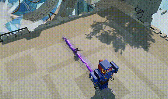 大招“双生天堂”则是一次强力的终结技,能对范围内敌人造成大范围近战酸蚀伤害。该技能的伤害倍率会根据消耗的“刀刃共鸣”层数提升,层数越多,爆发越高。因此建议在充分叠满增益后再释放,以最大化输出效率。