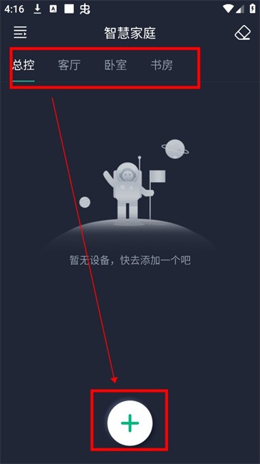 1、进入软件后根据需要可在需要添加设备的房间里点击+号
