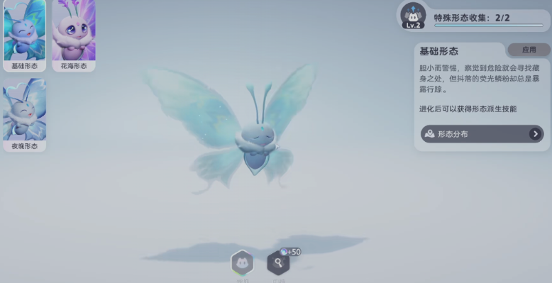 游戏当中的其实所有宠物,它后期在形态变化上都有很多选择,今天说到的荧光蝶在后期,同样也是有各种形态可以变化的,基础的形态当中就是荧光蝶的蓝色外观,它的翅膀也会有一些蓝色的荧光,而且看起来是透明状的,开心的时候,它的触须还会变成一个爱心的形状,另外它还有一个花海的形态也是人气很高的,在花海形状当中,它的全身颜色都会进行变化,此时会变成一个粉紫色的外观,而且头上的触须会直接变成一个花朵的形态,大部分比较注重颜值的玩家都是更喜欢它这个花海形态的。