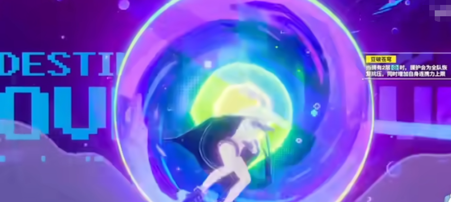恬豆在大招上面也就是叫做援护技,这个技能的名字是豆破苍穹,使用这个技能的时候有一定的前提,就是前期至少需要拥有两层正面的增益,才可以用好这个技能的最大化能力,使用的时候会根据范围带来援护,这个效果会为全队的角色都带来恢复的效果,并且在恢复数值上面是较高的,同时给自身带来的是连携力上限上面的提升,此时使用这个效果得到足够的增益之后,下一次触发连携技能的话,达到的增益数值会更多一点,所以恬豆在使用大招的情况下,一场战斗里面并不是每个回合都可以用到这个大招的。