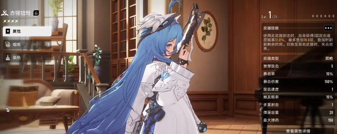 赤猩猎弩:基础属性好像并不是很亮眼,攻击力是5,暴击率是15%,暴击伤害就可以达到150%。如果只是从数值方面来看,比不上同级别的手枪,但是核心的竞争力就在于攻击速度叠加。每一次在射击时就可以获得一层10%的攻击,速度最高就可以叠加10层,一旦在叠满之后就可以获得100%的攻击速度。在实际战斗的过程中还需要记住不换枪的原则,中途切换武器就可以让所有的攻击层数清零,那之前的设计就等于白叠。在游戏的两种场景中都需要使用,第1个就是打单个精英怪,从第5层开始就能感觉到射击速度加快。第二就在于清理小怪,例如3~4个小怪的波次,并不需要去频繁的走位换武器。