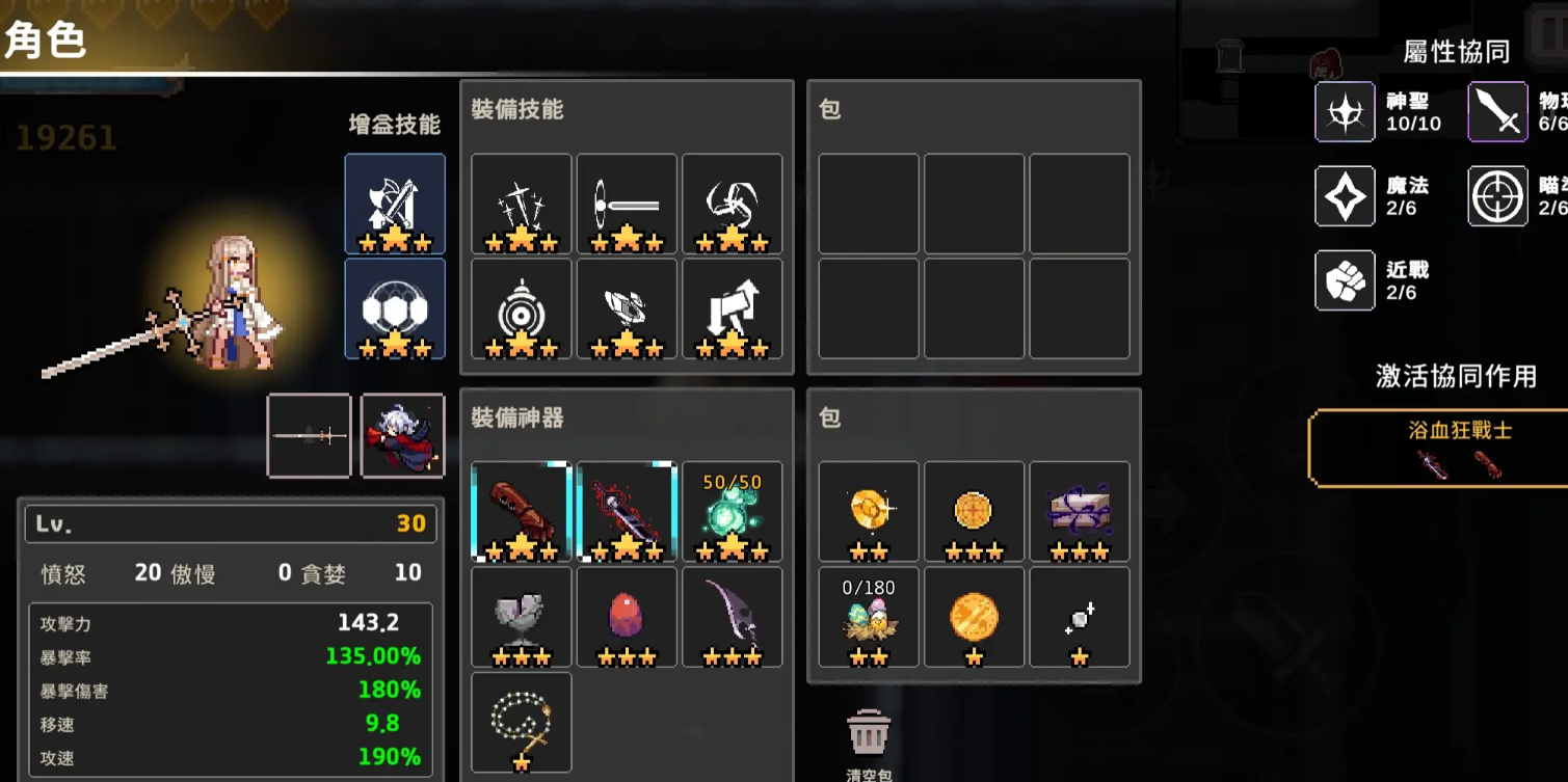 龙人的具体加点点数,应当以愤怒为主贪婪为辅,同时注重加点暴击率和暴击伤害,移动速度方面可以暂不考虑,但是攻击速度一定要拉满, 因为龙人的加成和攻击速度息息相关,当攻击速度和龙餐的恢复量成正循环时,玩家则可以不用顾及龙人的转化时间。