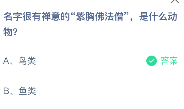 名字很有禅意的“紫胸佛法僧”,是什么动物?支付宝小鸡课堂开课啦!每天花一分钟答题赚饲料,喂喂小鸡就能贡献爱心啦!轻松又意义十足!2025年10月26日蚂蚁庄园的小鸡课堂题目正确答案是【鸟类】,紫胸佛法僧是佛法僧目佛法僧科鸟类。