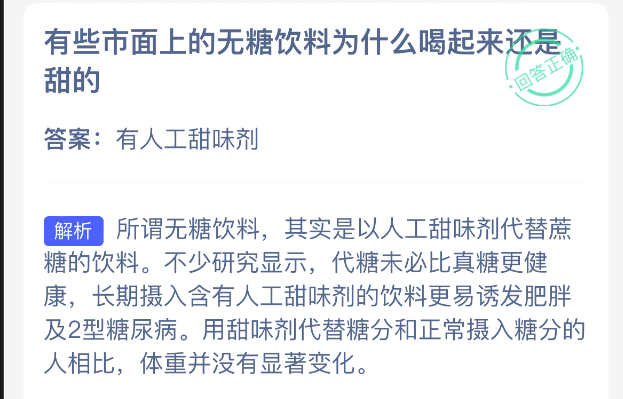 以上就是有些市面上的无糖饮料为什么喝起来还是甜的,支付宝蚂蚁庄园2025年10月27答案最新,更多精彩内容,请点击关注3DM手游网更新!
