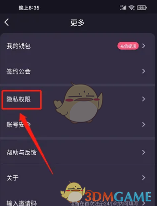 3、进入更多界面,点击【隐私权限】。