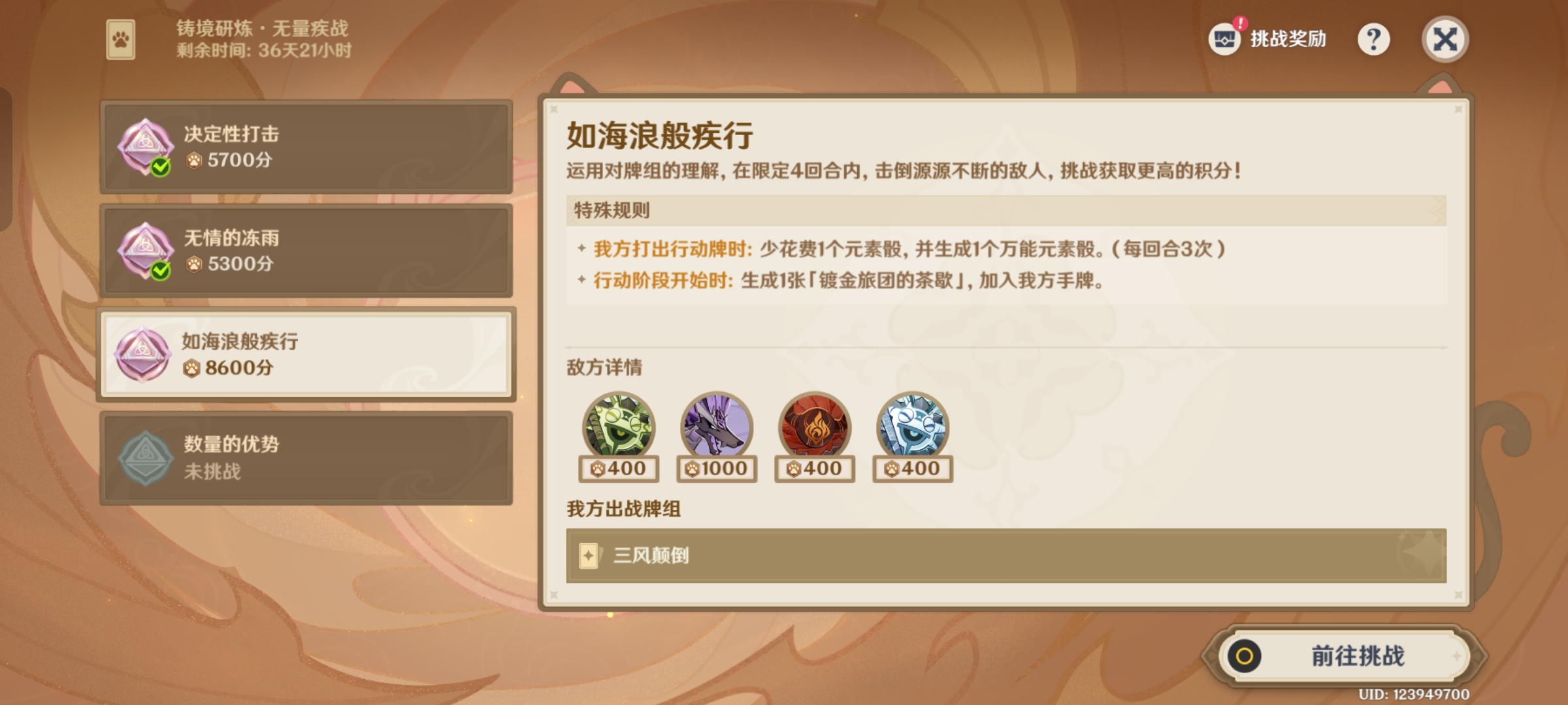 《原神》新铸镜研炼·无量疾战3000分通关攻略: