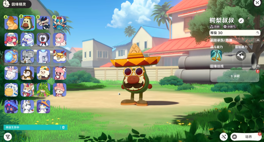 而鳄梨叔叔的特性是小脾气,根据这个特性,其实大家可以选择精灵就有很多,目前在特性里面,小脾气类型当中的一共有8个宠物可以进行选择,所以大家可以根据这些特性上场达到的羁绊触发一个比较好的效果,这里小脾气精灵在上阵之后,他们得到的基本效果就是全能吸血的效果,在吸血的状态达成之后,还有一定的暴击力提升概率,如果在战斗里面,大家触发了这个小脾气的羁绊,那么此次如果击败敌人,并且是第一个击败敌人,还有额外的战果加成,也就是说首次击败敌人的时候,他得到的价值是最高的,当然也因为这样独特的原理,他的输出在进行搭配的时候,其实阵容上也是比较自由的,大家要考虑的就是他的小脾气特性,因为这是比较简单的触发条件,他的这个羁绊能够触发的话,达到的这种效果是比较明显的。