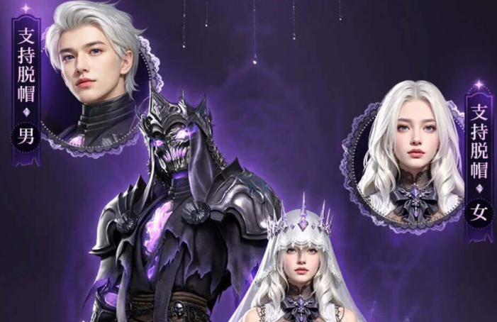 此次万圣节主题活动将于10月23日正式上线,持续至11月7日。两套主打时装风格迥异,分别诠释了神秘肃穆与童趣搞怪的双重氛围。“净罪颂祷”以宗教幻想为设计灵感,女性角色身穿洁白长裙,搭配冰晶王冠与轻盈头纱,袖口点缀蕾丝,幽火装饰增添诡谲气息;男性角色则身披银色护甲,胸口燃起紫色火焰,头戴荆棘王冠,尽显审判使者的威严气质。