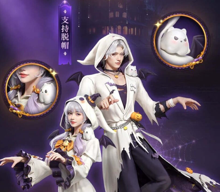 另一套“床单小鬼”则走俏皮路线,还原经典万圣节形象。幸存者可披上柔软白床单,头顶南瓜灯,佩戴系有蝴蝶结的小帽子,化身捣蛋小鬼。时装支持切换戴帽状态,方便展示发型与面部装扮,无论是参与讨糖行动还是恶作剧,都极具节日代入感。
