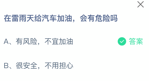 以上就是在雷雨天给汽车加油,会有危险吗,支付宝蚂蚁庄园2025年10月31答案最新,更多精彩内容,请点击关注3DM手游网更新!