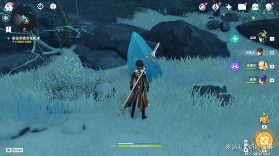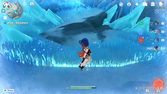 接近坚冰时会发现被一层屏障阻挡,完成冰湖中央的挑战任务后屏障解除。