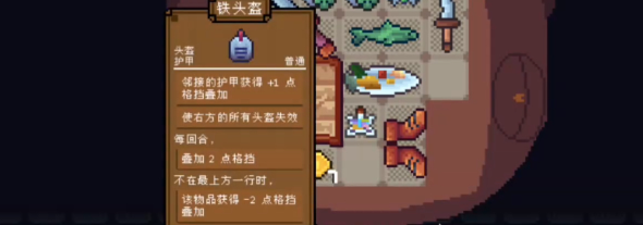 对于新手宝宝们来说,前期防御类的武器是比较实用的。这里比较推荐的是铁头盔,一个非常普通的武器,使用方法也非常简单,将它放置在护甲旁,就可以拥有1点额外的格挡值。同时还能够使右方所有的头盔都成为失效状态,且每个回合都可以拥有2点的格挡值。除了铁头盔,大家还可以携带等级更高的带刺头盔,不仅带有失效效果,同时还可以叠加4点的刺甲值。