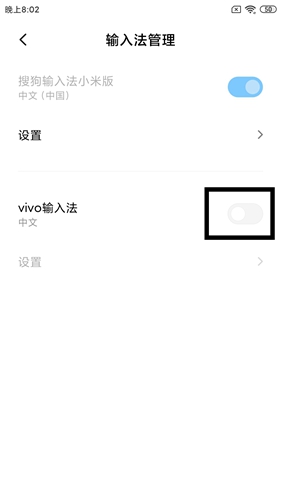 4、然后我们拖动那个开关把VIVO输入法设置起来即可。