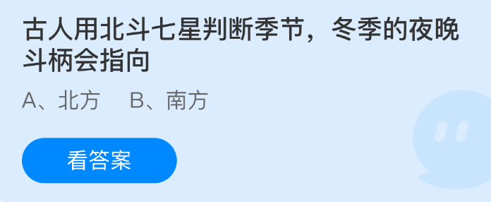 以上就是古人用北斗七星判断季节,冬季的夜晚斗柄会指向,支付宝蚂蚁庄园2025年11月4日答案最新,更多精彩内容,请点击关注3DM手游网更新!