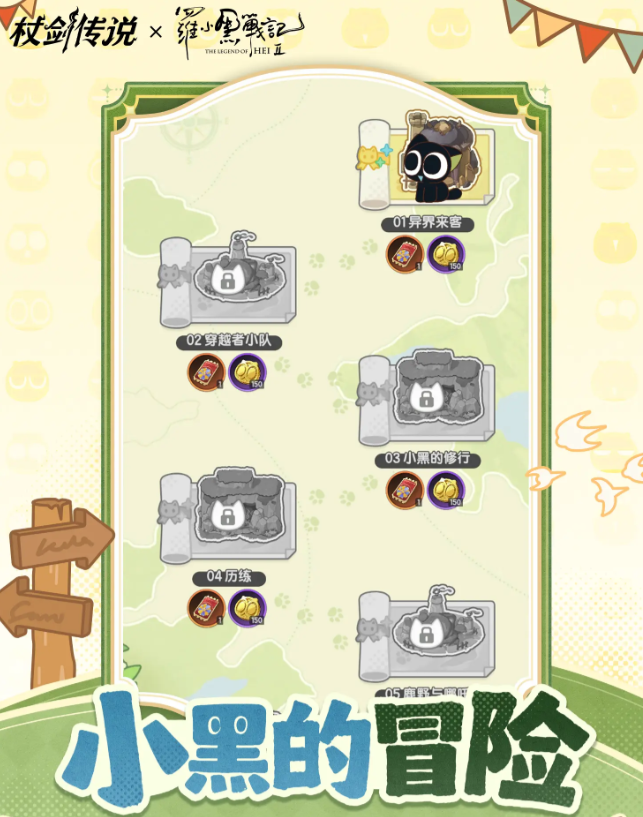 本次联动还特别推出原创剧情篇章——“小黑的冒险”,讲述小黑一行人意外穿越至坎斯汀大陆后展开的一系列奇遇故事。他们将如何适应这个陌生的世界?又会与原有角色产生怎样的互动?精彩内容等待玩家亲自探索揭晓。