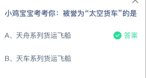 以上就是小鸡宝宝考考你:被誉为“太空货车”的是,支付宝蚂蚁庄园2025年11月6日答案最新,更多精彩内容,请点击关注3DM手游网更新!