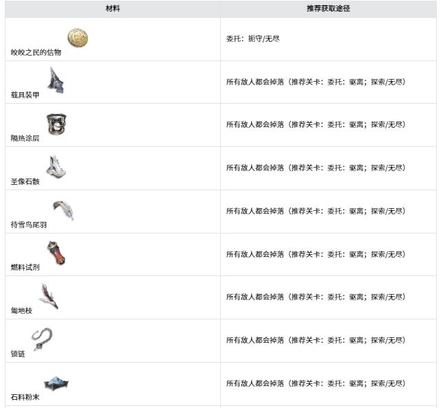下述这些材料同样也是角色技能升级所需的材料,在整个流程中会不断地获取并消耗。