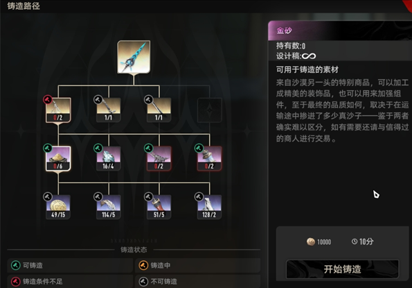 (铸造一把武器需要消耗的材料)