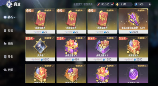 最后在参与各种任务的要求时,要利用策略去完成挑战,只有每次完成的任务挑战后才可获得丰厚的钻石奖励。积累了大量的钻石之后,就可在钻石商城当中购买各种魂骨,其中的魂骨类型完全不同,比如花费3000钻石之后就可获得稀有的紫晶魂骨。还需经常在商城当中仔细查看,因为在商城里会不定期上下出各种限定的魂骨。只要支付钻石后即可轻松拥有。
