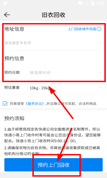2、选择需要回收的品类,预约上门回收的时间